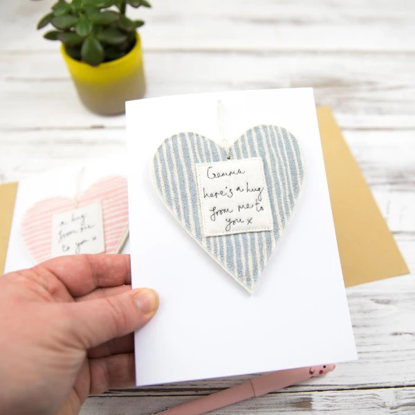 For the times when you don't know what to say or when a friend or family member needs a little pick me up, these hugs in the post could be the perfect thing. A card and a keepsake handmade customisable heart decoration all-in-one that will bring a smile and some comfort to your loved one.