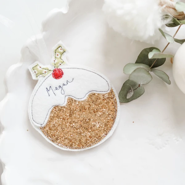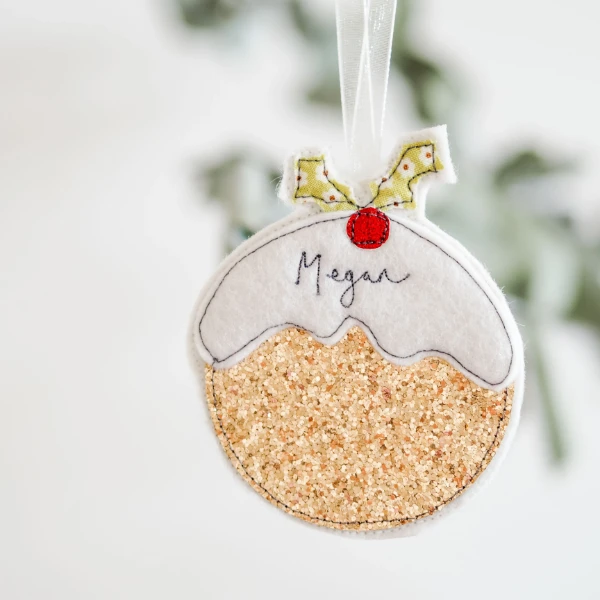 Created with skilful free-motion embroidery and applique techniques, along with an option for personalisation, each pudding is perfected as a uniquely crafted design – perfect for a bespoke Christmas tree decoration, gift within a card or placed around individual table settings.