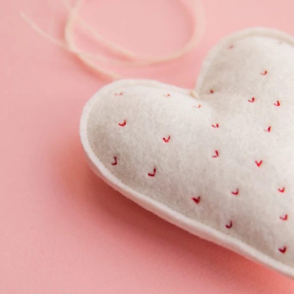 Each of these hearts have been stitched with tiny red hearts by free hand embroidery which makes them completely unique.