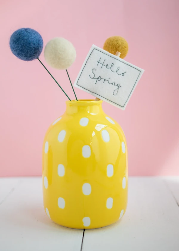 I think this hello spring mini sign is my most popular one ever, made made using free motion embroidery this little sign can come on 2 stick lengths. 30cm is perfect for a bunch of flowers or 20 cm is perfect for a plant or pencil pot.