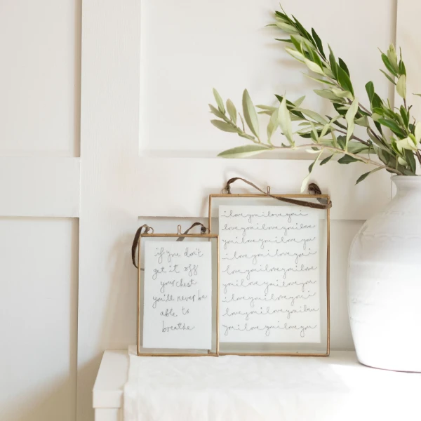 These hanging frames come with a loop of velvet ribbon so you can hang it from a hook, or they could even be propped on a picture shelf.