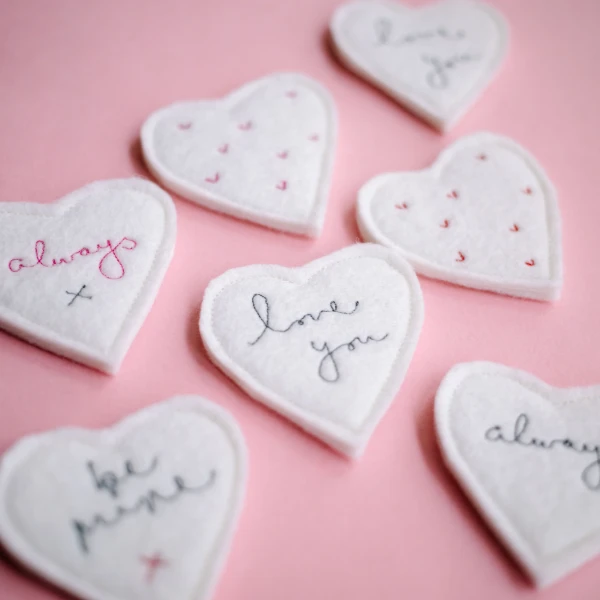 These tiny stitched hearts can come with or without a hanging cord, perfect for popping in a card, in a printers tray or hanging on a hook.