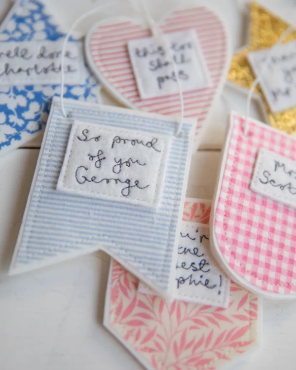 There's 5 shape options and lots of fabrics to pick from all you need to worry about is what you'd like it to say.