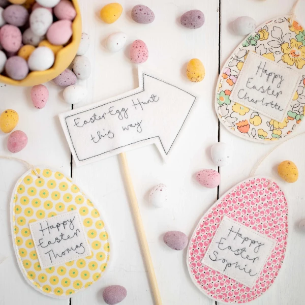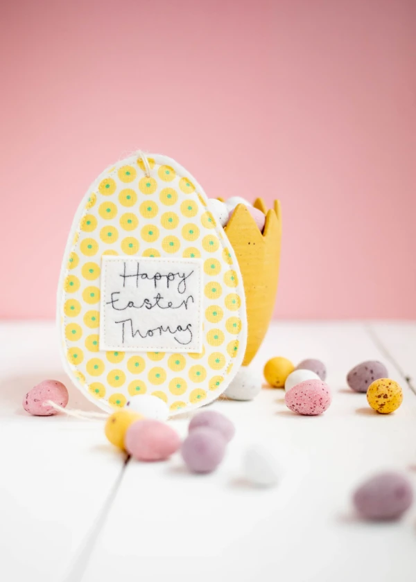 A simple but effective personalised Easter Egg shaped decoration that can be kept and used year after year.