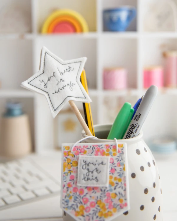 These mini positive signs are perfect for a pen pot on your desk, a plant or just on a shelf.