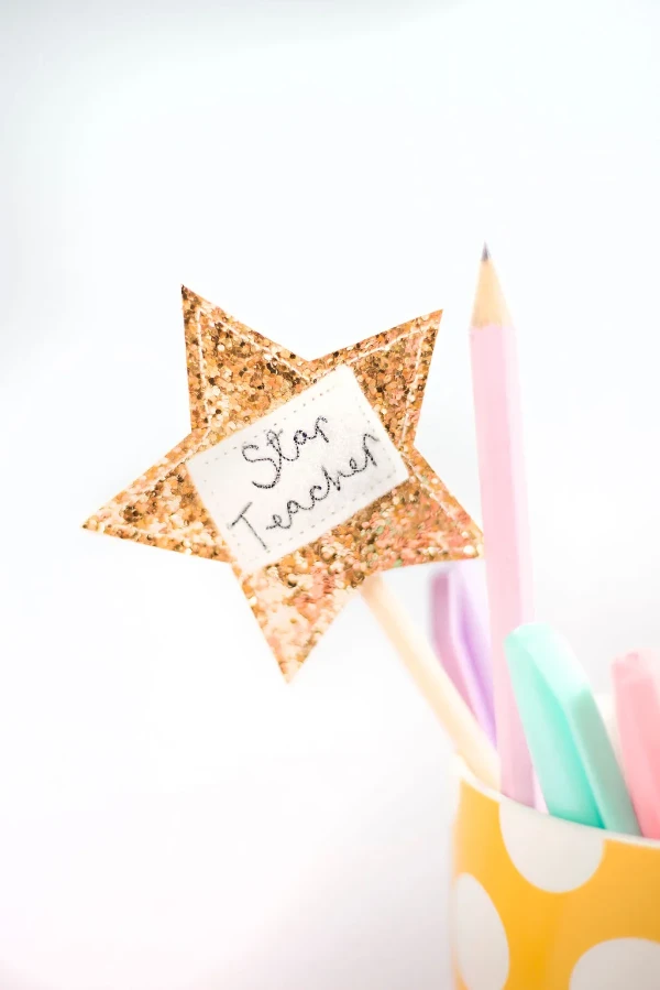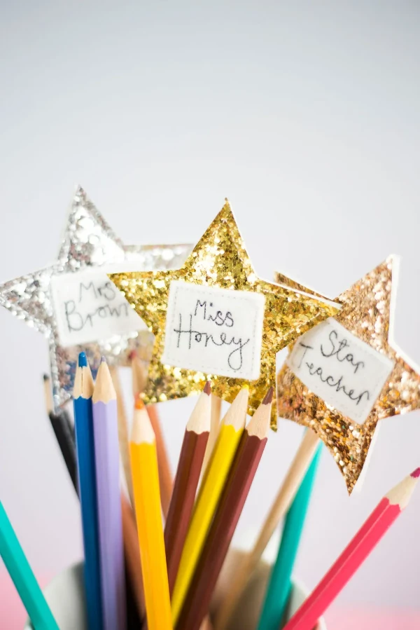 These completely unique thank you teacher gifts are wonderful way to say a big end-of-year thank you to your children’s teacher; designed to sit in a pen pot on their desk, this customisable Star Topper will hopefully remind them every day of how appreciated they are! You can choose your own wording and sparkly fabric colour for the star too.