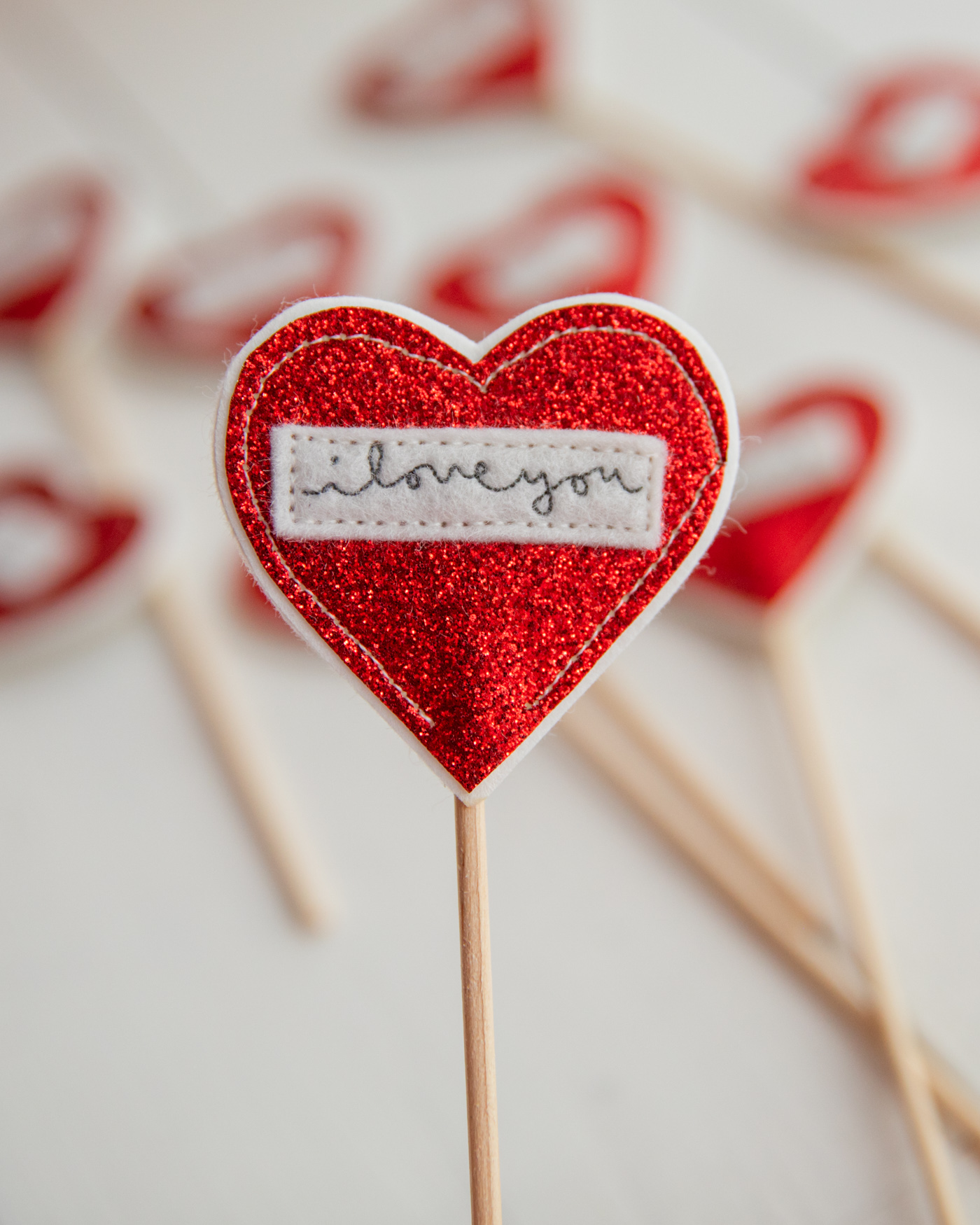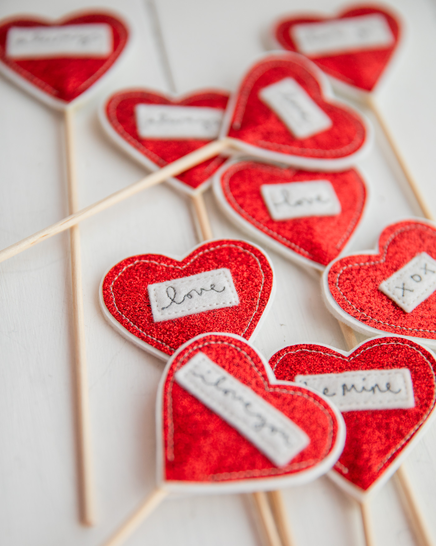 A classic twist on my valentines hearts, these small handmade red glitter hearts on sticks are a cute addition to a plant pot or pen pot.