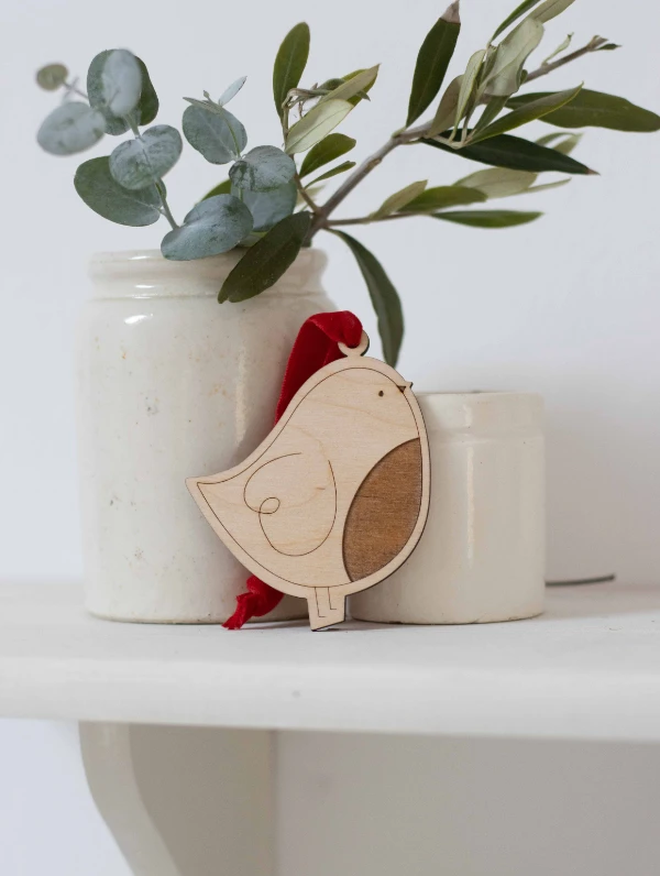 This Robin was a hit last year so i had to bring him back. My popular Robin decoration made into a wooden decoration by another small business who has laser cut them from birchwood ply.