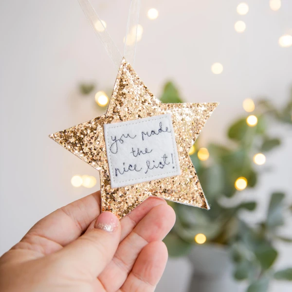 Your handmade ‘You’re on the nice list’ Star Tree Decoration will be beautifully packaged in protective packaging and sent to you via First Class post.
