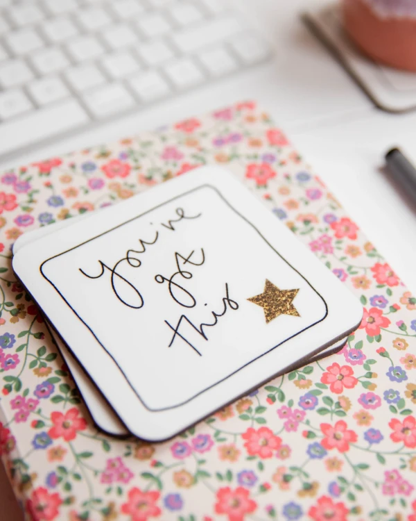 Each coaster is 9 x 9cm and has the words 'you've got this' on them in my handwriting with a gold star too.